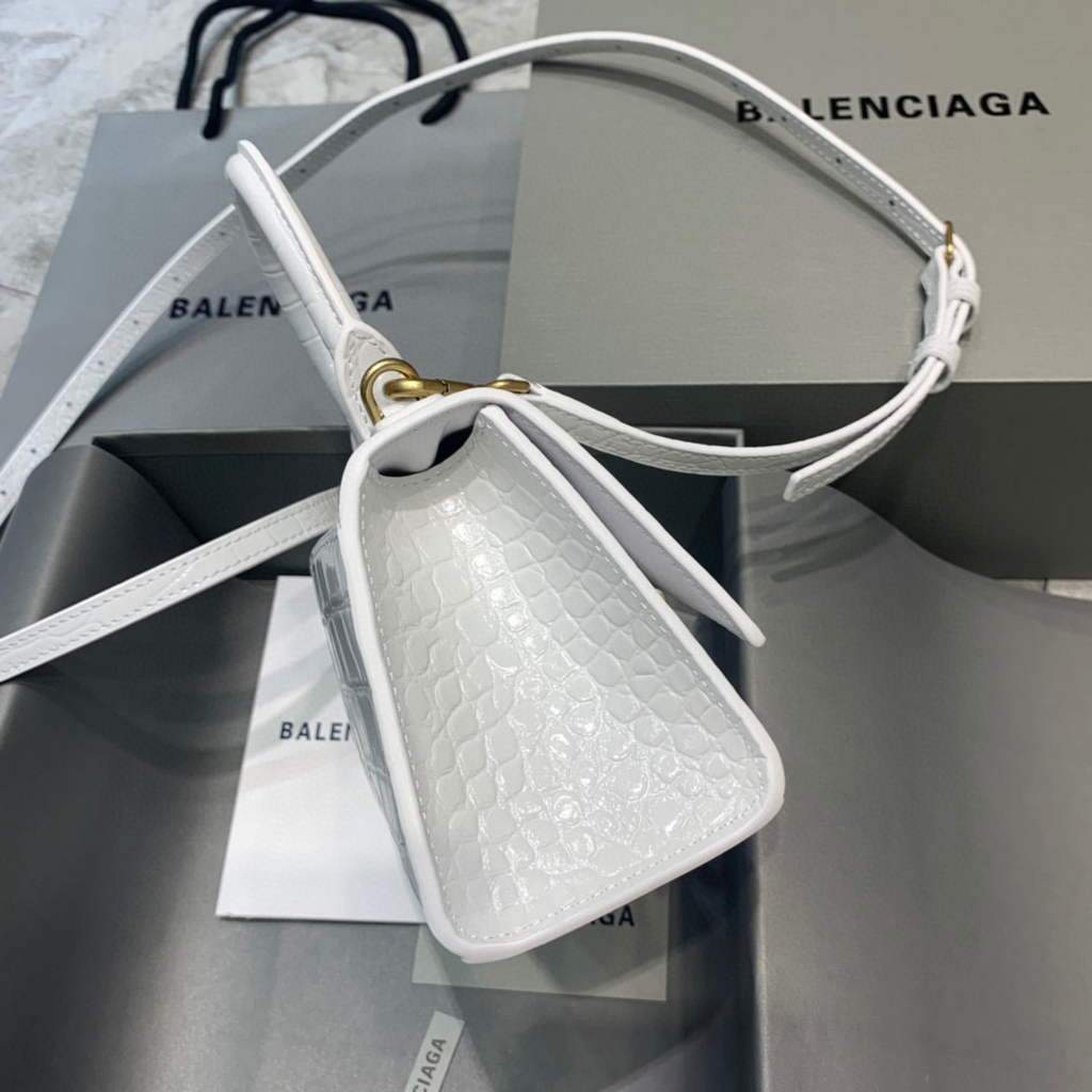 Balenciaga 592833 zandloper XS bovenste handgreep tas wit goud
