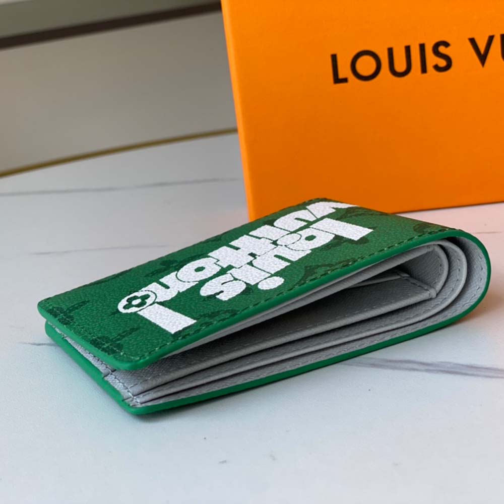 Onderdeel van de dagelijkse LV-capsulecollectie geïntroduceerd voor herfst-winter 2021-22, heeft de meervoudige portemonnee talloze slots voor kaarten en notities in een verrassend praktisch interieur. Gemaakt in vintage monogram canvas en getekend met de nieuwe “Louis Vuitton!” naam, een opvallende grafische behandeling die vaak wordt aangetroffen op dagelijkse boodschappentassen, deze compacte portemonnee past gemakkelijk in de meeste zakken